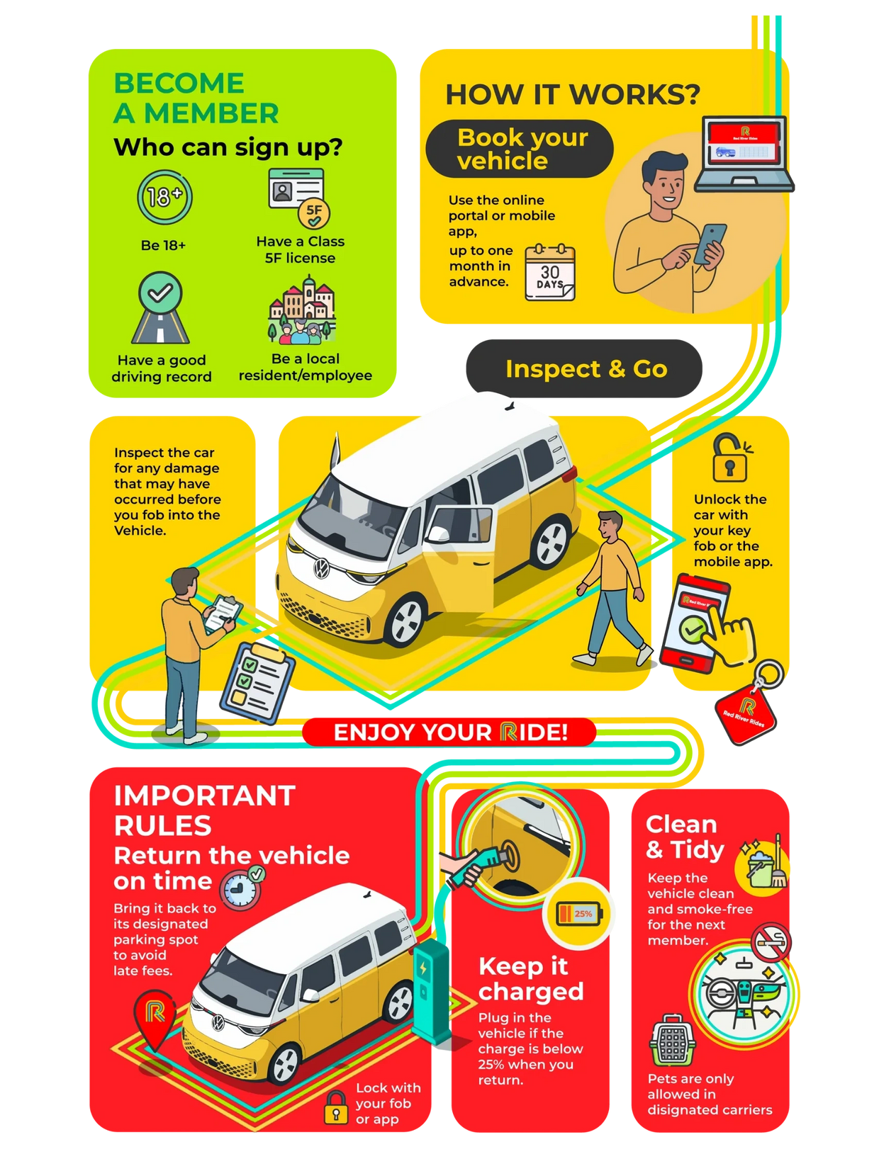 Simply reserve your car via the app, unlock it with a tap,